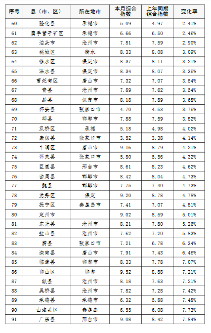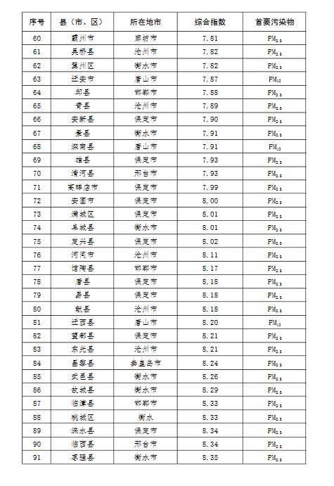 上半年,全省11個設區(qū)市城市空氣質(zhì)量由好到差依次為:張家口、承德、秦皇島、滄州、廊坊、衡水、唐山、保定、邢臺、石家莊、邯鄲。